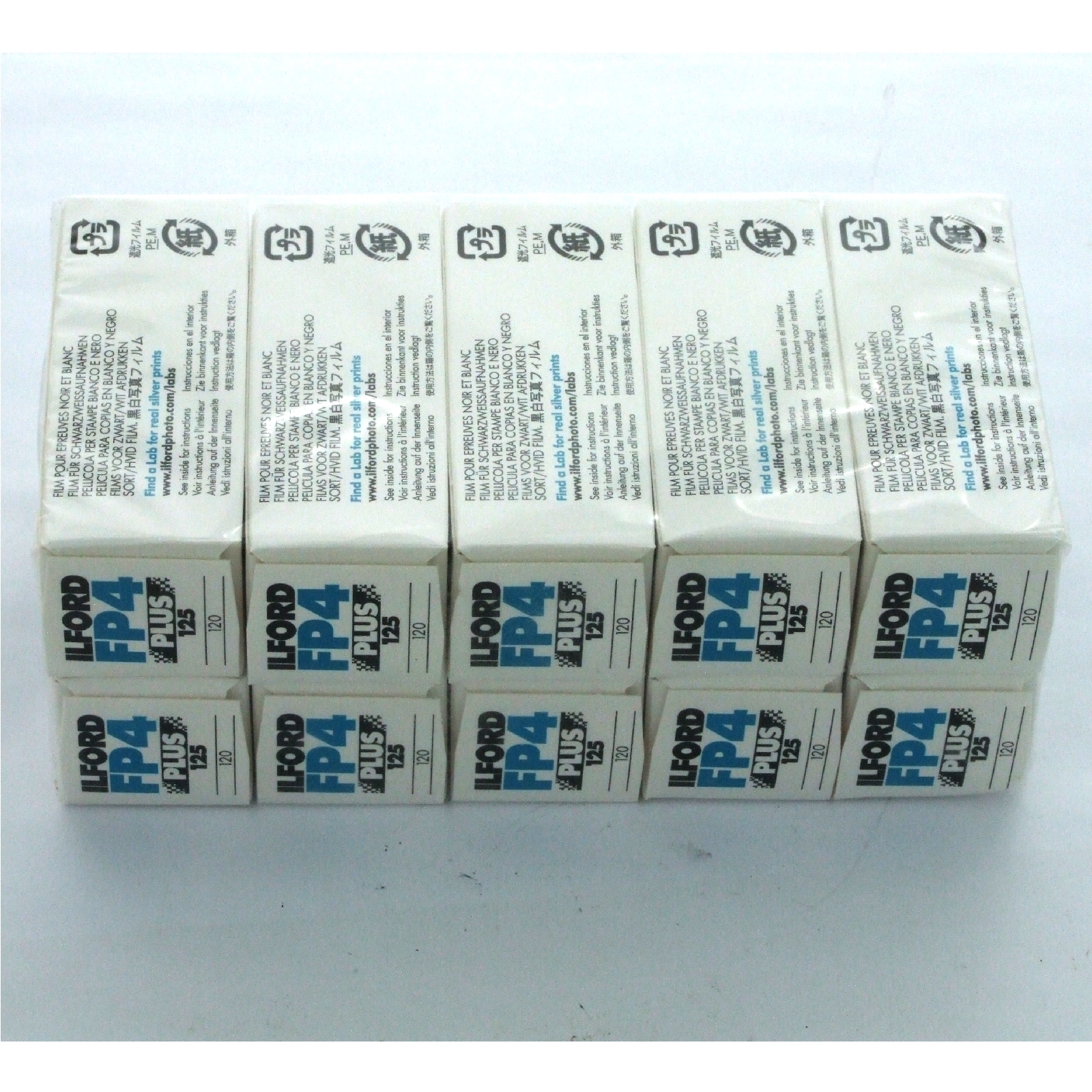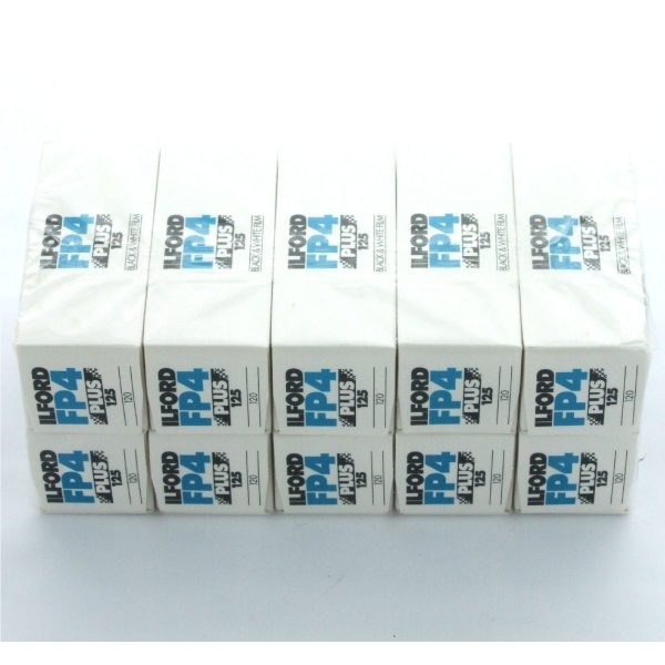 This sale is for 10 unopened rolls of Ilford FP4 120 125 ISO black & white negative film, expiry date 04/2017.