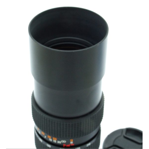 This lens is in superb optical and perfect mechanical condition, and cosmetically only shows very slight signs of wear – just a tiny bit of paint wear on the bayonet mount. The optics are really clean and apart from a couple of tiny dust specks (as always), perfect. There is a built-in extending lens hood.