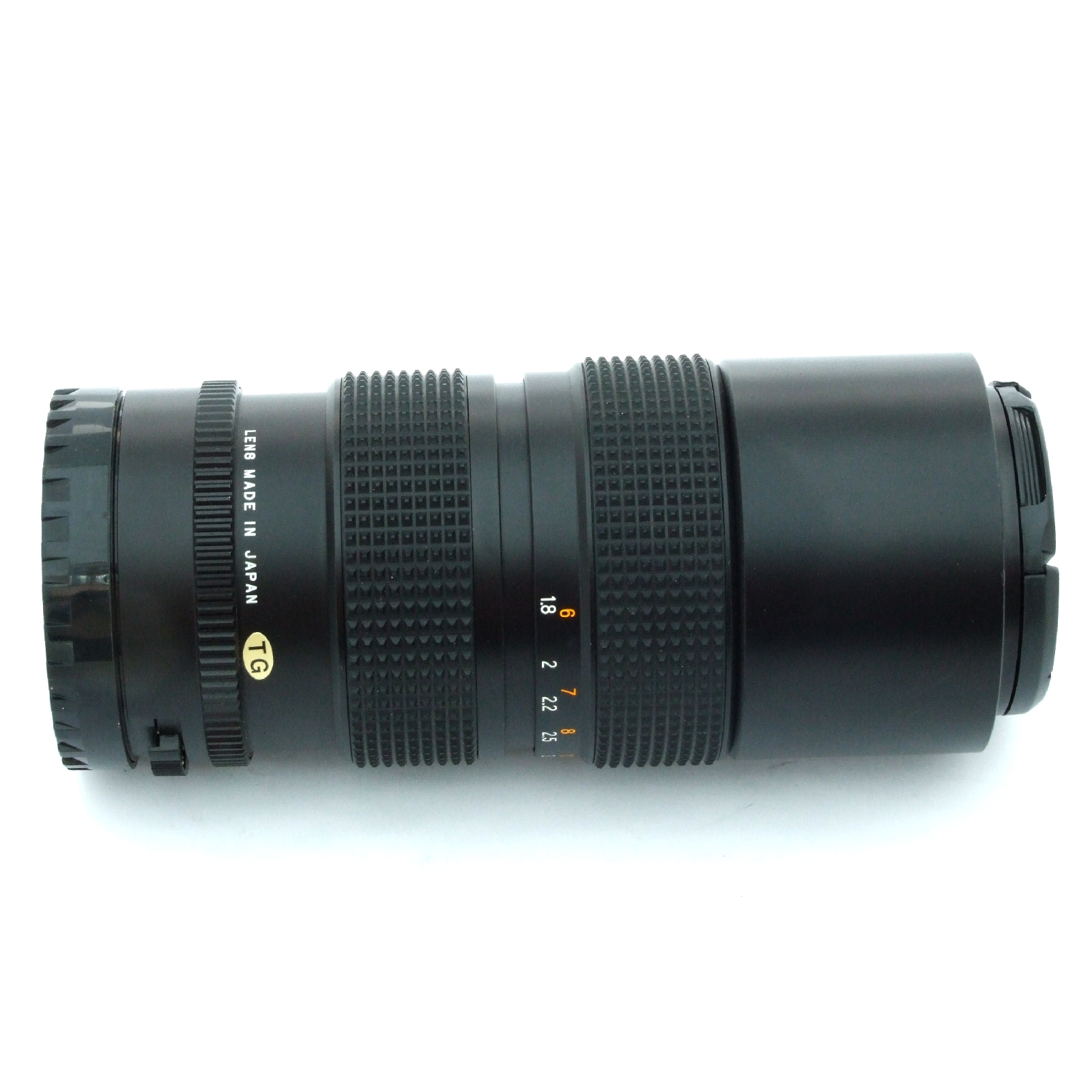 This lens is suitable for use with all Mamiya 645 cameras – M645, M645J, 1000S, 645E, Super, Pro and Pro TL (or even the 645AF if you want to, but you have to use the lens in stopped down mode), and is supplied with both end caps. This lens is equivalent to about 65-130mm in 135 format.