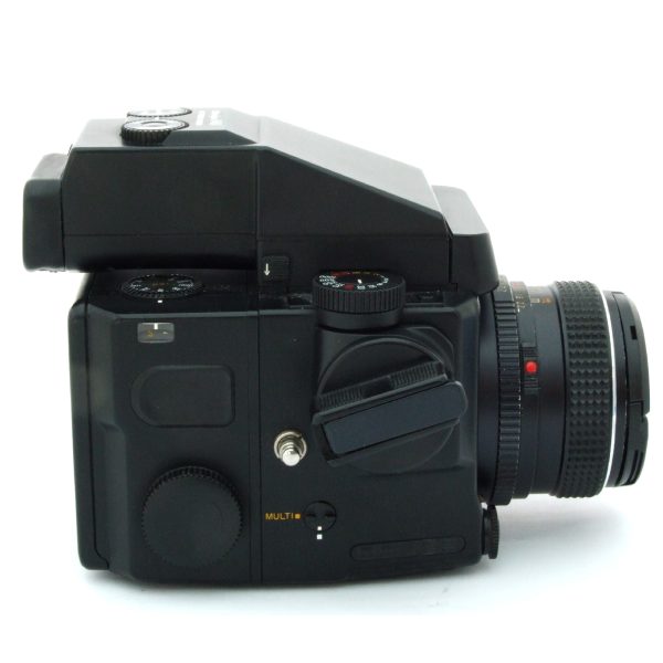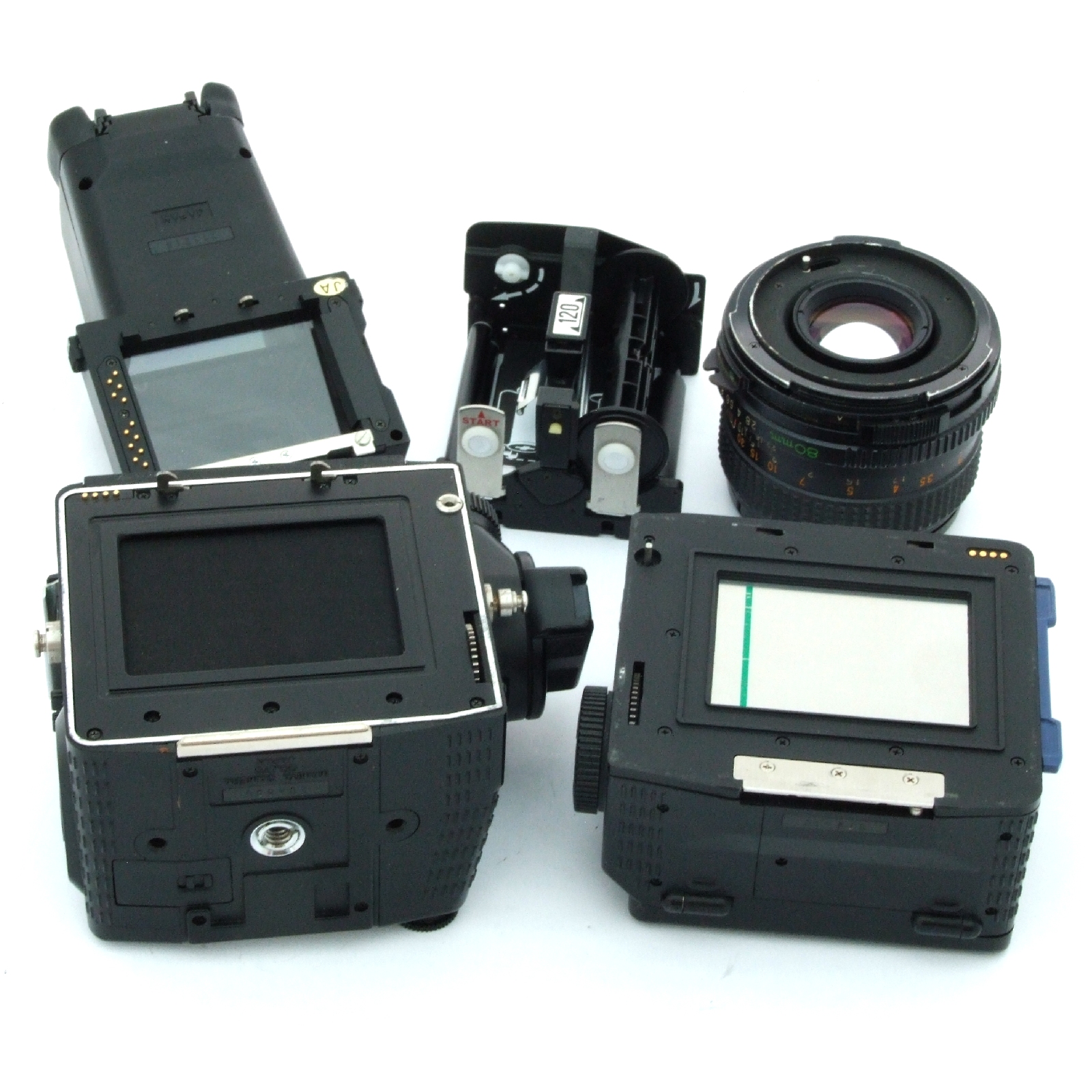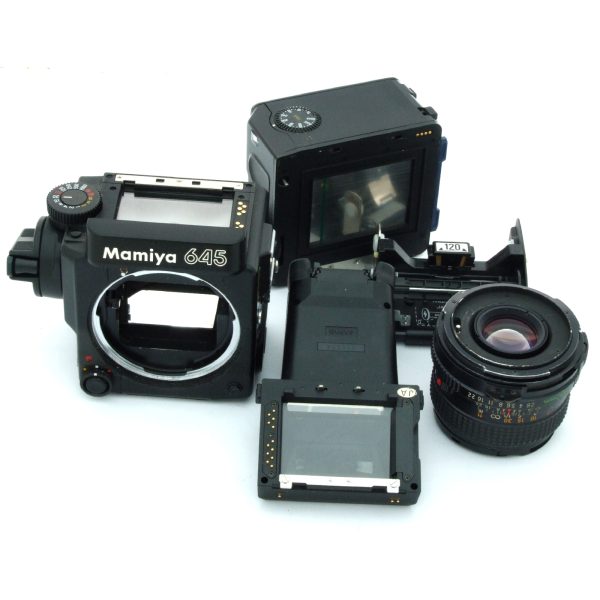 This is a superb Mamiya 645 manual focus camera. is all near mint except that the lens is exc/exc+ – it has a slightly rough rear ring from being put down and a slight dent in the filter ring, but this lens has been fully serviced and works perfectly. The camera overall has generally minimal signs of use. This is a great camera.